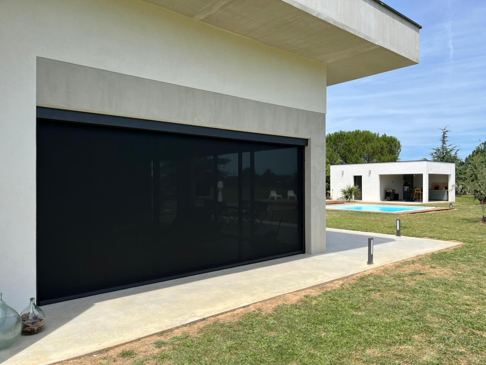 À Cahors, le store zip a été installé pour couvrir une grande ouverture exposée au soleil. La toile choisie permet à la fois de filtrer les rayons UV et de maintenir la visibilité vers l’extérieur, créant un espace ombragé agréable sans sensation de confinement.