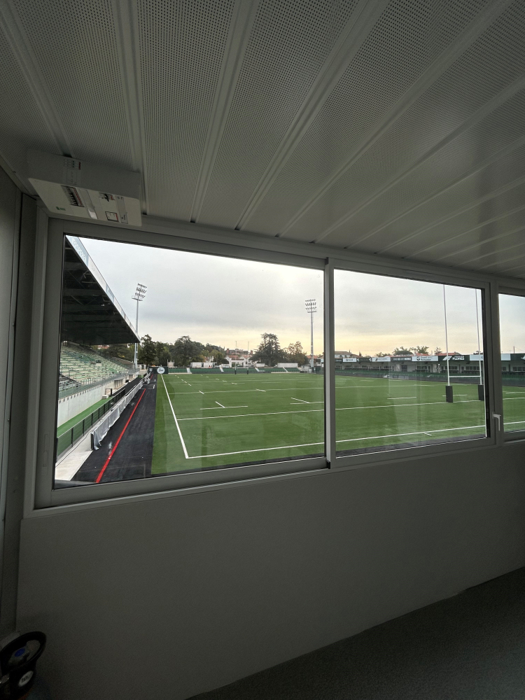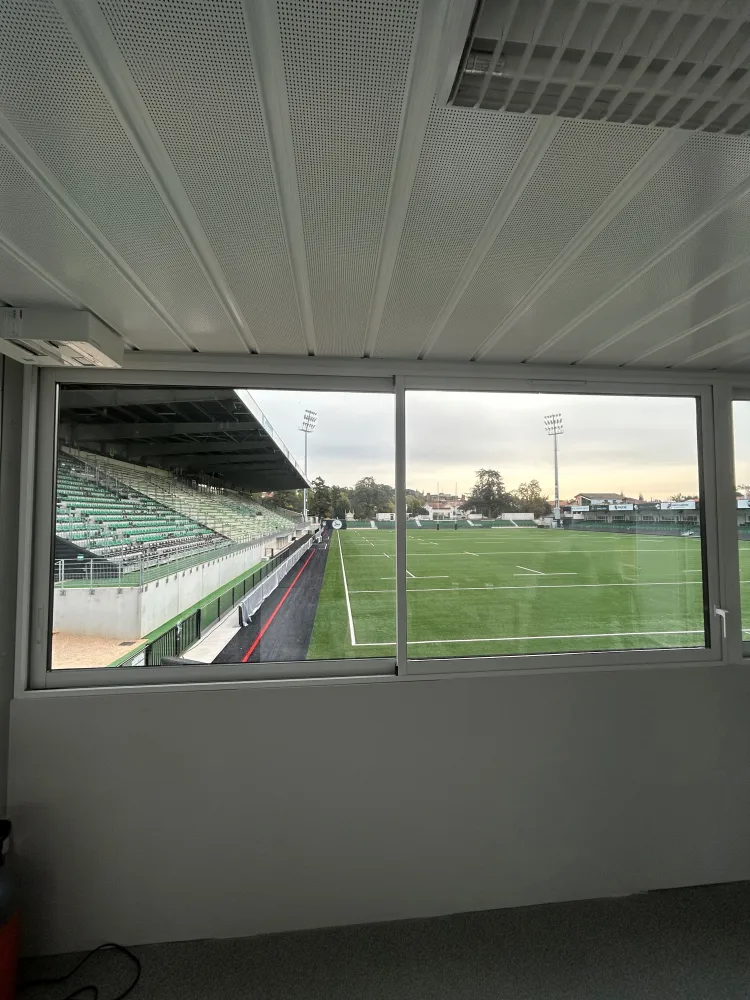Grâce à cette installation, les loges du stade de Sapiac bénéficient désormais d’un équipement moderne et performant. Les spectateurs profitent d’une vue panoramique exceptionnelle sur le terrain, dans un espace confortable et lumineux. Les coulissants en aluminium apportent non seulement une solution fonctionnelle, mais aussi une réelle valeur ajoutée en termes d’image et de confort.